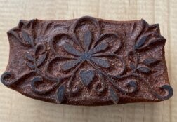 Dieser wunderschöne Stempel ist wunderbar geeignet für Drucke auf Stoff, Papier, Keramik und Seifen. Wenn du auf Stoffen druckst, beachte dass du bei handgefertigten Modeln wie diesen, immer eine weiche Unterlage verwendest, damit das Motiv exakt gedruckt wird.